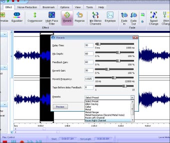 Der Anwender bearbeitet die gewählte Audio-Datei im Hauptfenster von Power Sound Editor mit Hilfe der unterschiedlichen Menüfunktionen. Einzelne Spurbereiche oder den gewünschten Stereokanal markiert man und wählt die anzuwendenden Effekte oder Filter aus. Power Sound Editor speichert oft verwendete Markierungen in einer Zwischenablage.